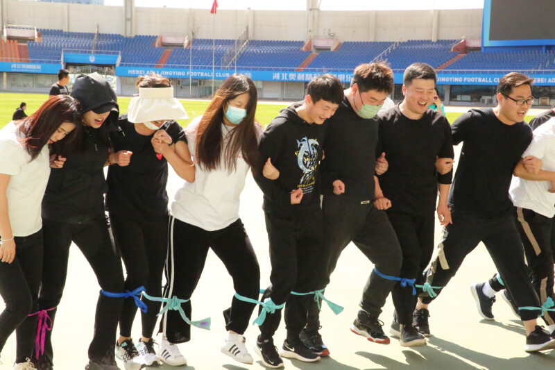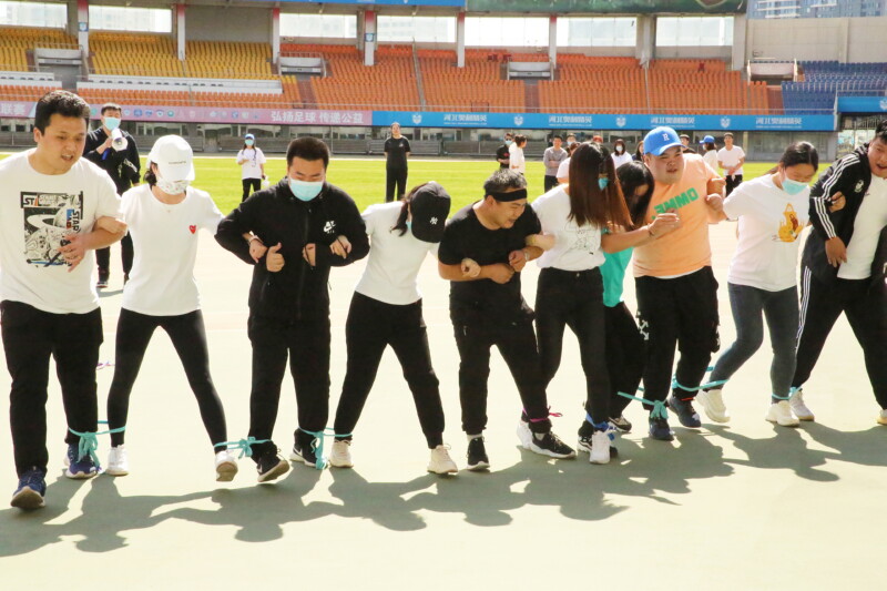 (每組選取10名參賽者,將左右兩人的其中一只腳綁在一起,大家一起從起點(diǎn)行至終點(diǎn))