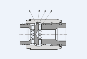 力士樂REXROTH節(jié)流閥發(fā)生在兩個流動方向。液壓油通過側孔(3)到達節(jié)流點(4)。這在外殼(2)和可調節(jié)套筒(1)之間形成。通過轉動套筒(1),可以無限改變節(jié)流點(4)的橫截面。